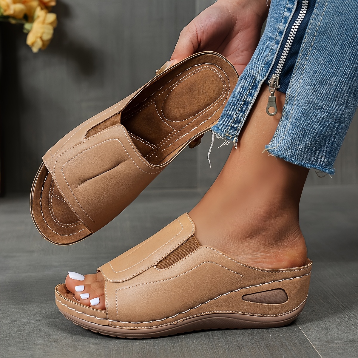 Simply, slip them on and snug your feet in place around the toe clasp for enhanced support.